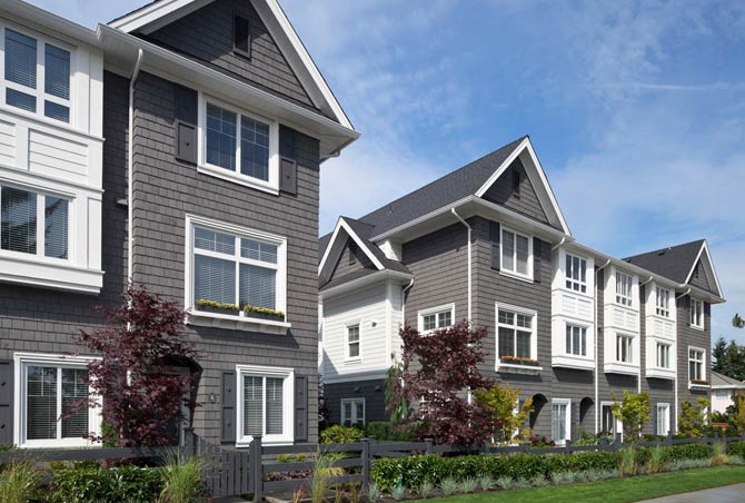 These two, three + four bedroom townhomes are ideally positioned near major transit + commuter routes and a short drive to some of the best golf courses in BC. Key features that include: Shingle style architecture, side-by-side parking, sunken living rooms, dual his and hers sinks, stainless steel appliances and main floor powder rooms.